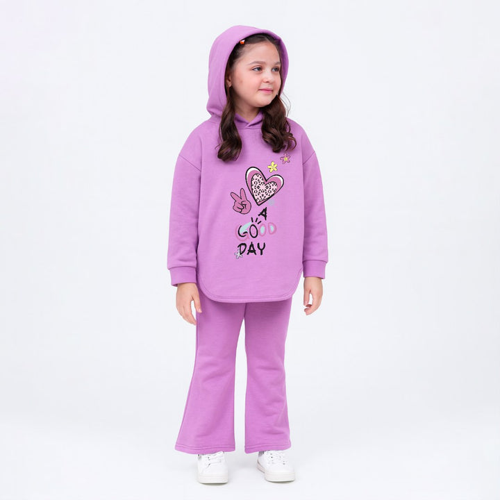 The hoodie features a fun washable digital transfer print adding a pop of personality to your child’s outfit. Paired with matching WIDE LEG trousers, this tracksuit is a trendy yet practical choice for casual outings, playdates, or cozy indoor wear.