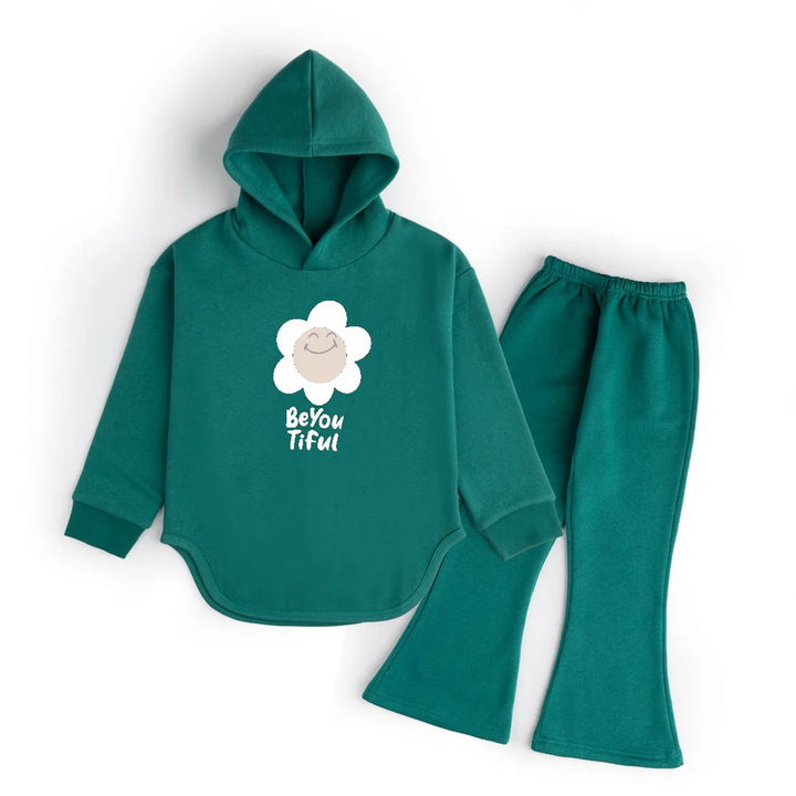 The hoodie features a fun washable digital transfer print adding a pop of personality to your child’s outfit. Paired with matching WIDE LEG trousers, this tracksuit is a trendy yet practical choice for casual outings, playdates, or cozy indoor wear.