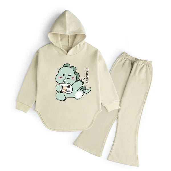 The hoodie features a fun washable digital transfer print adding a pop of personality to your child’s outfit. Paired with matching WIDE LEG trousers, this tracksuit is a trendy yet practical choice for casual outings, playdates, or cozy indoor wear.