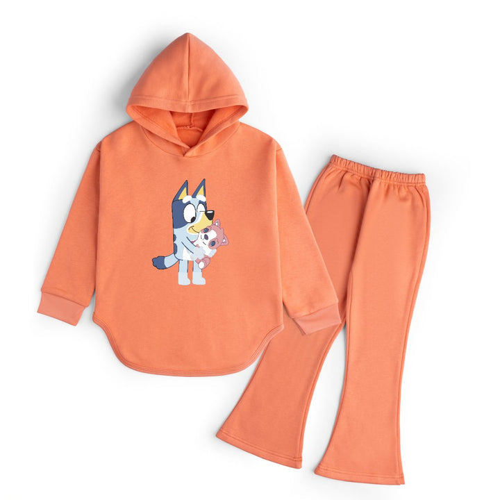 The hoodie features a fun washable digital transfer print adding a pop of personality to your child’s outfit. Paired with matching WIDE LEG trousers, this tracksuit is a trendy yet practical choice for casual outings, playdates, or cozy indoor wear.