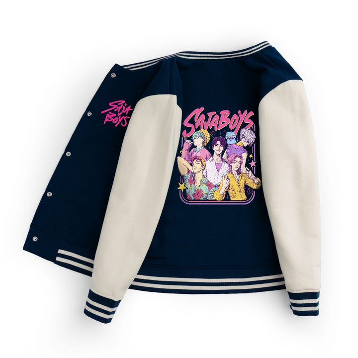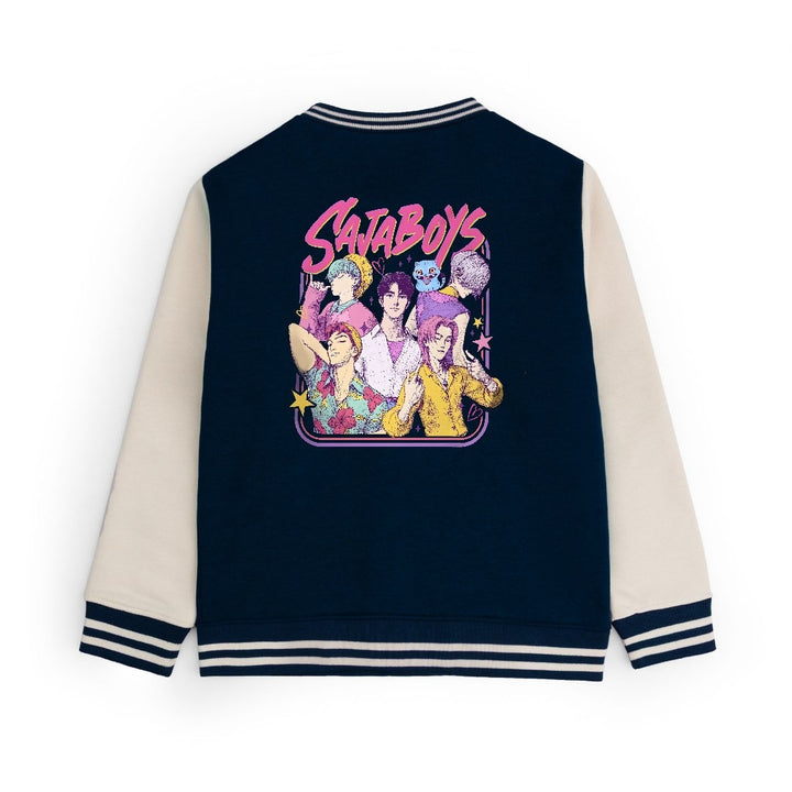 The classic varsity-style design features contrast sleeves, ribbed cuffs, and hem detailing for a sporty touch. The front snap buttons make it easy to wear, while the DTF logos adds a fun pop of color for every fan .