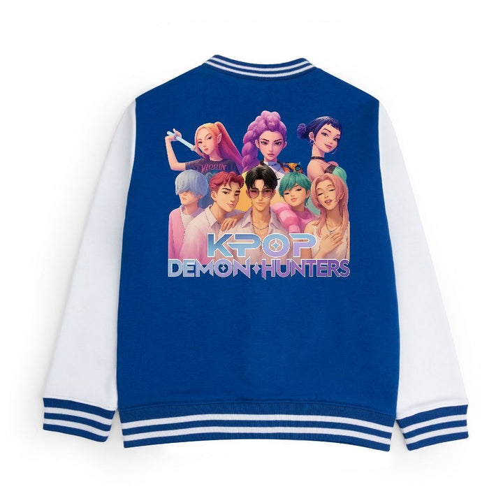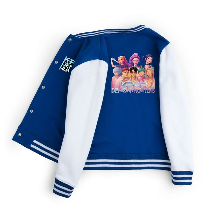 FLEECE BASEBALL JACKET - ROYAL WHITE DEMON HUNTERS FAMILY