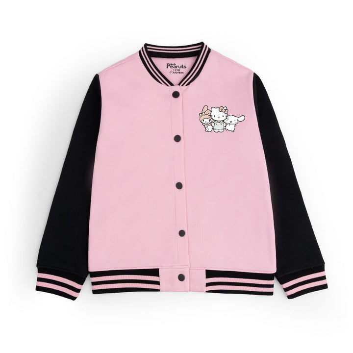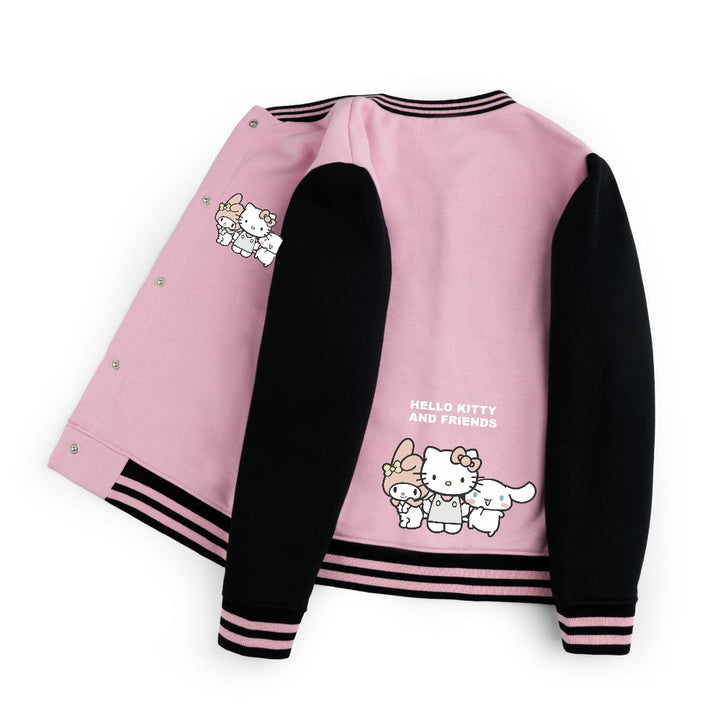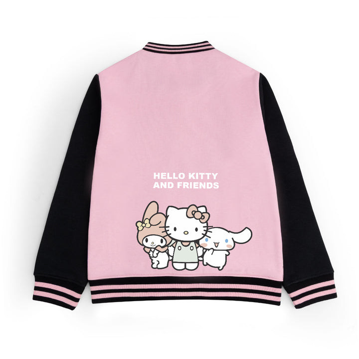 FLEECE BASEBALL JACKET - BABY PINK BLACK HELLO KITTY FRIENDS