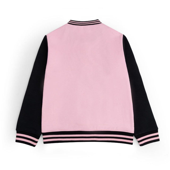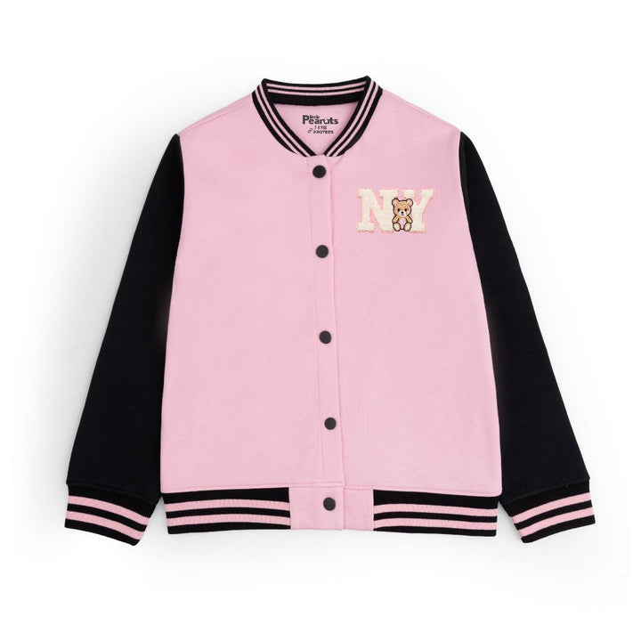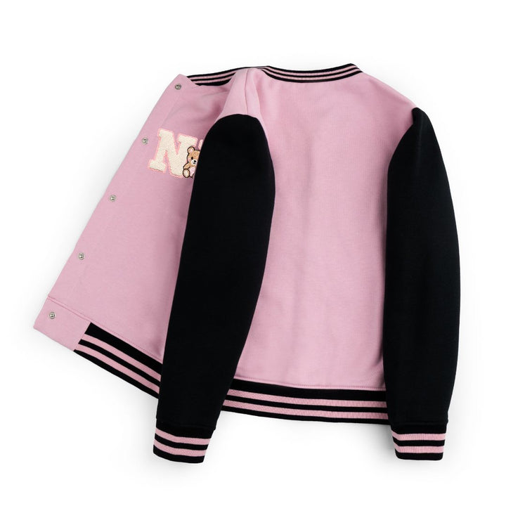 FLEECE BASEBALL JACKET - BABY PINK BLACK NY BEAR