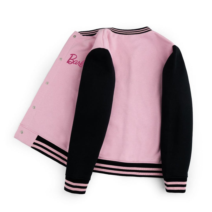 FLEECE BASEBALL JACKET - BABY PINK BLACK SIDE BARBIE