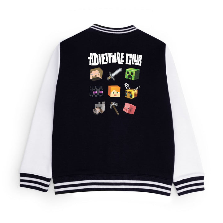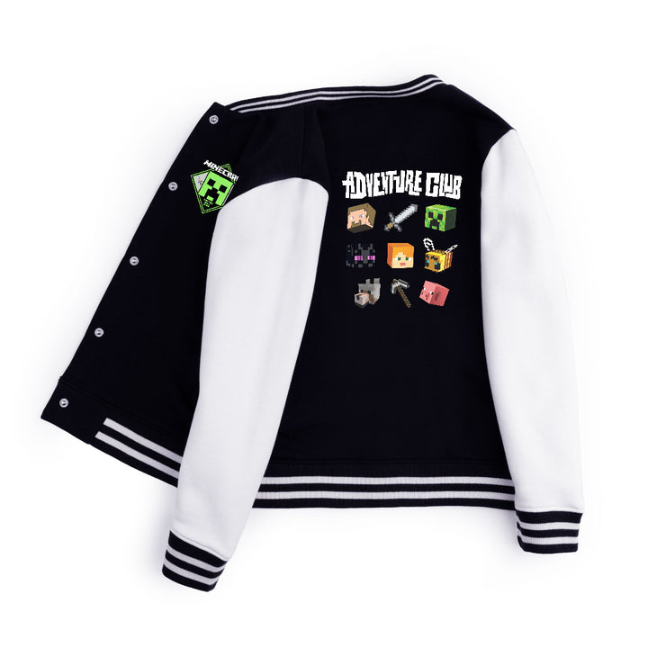 FLEECE BASEBALL JACKET - BLACK WHITE BLACK ADVENTRURE CLUB MINECRAFT