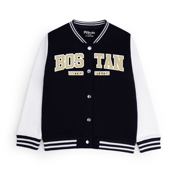 FLEECE BASEBALL JACKET - BLACK WHITE BOSTAN