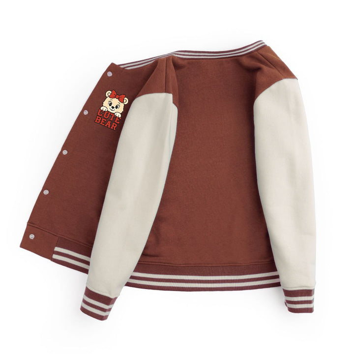 FLEECE BASEBALL JACKET - BROWN OFFWHITE CUTE BEAR