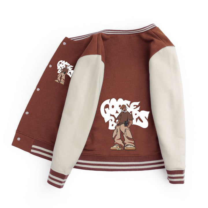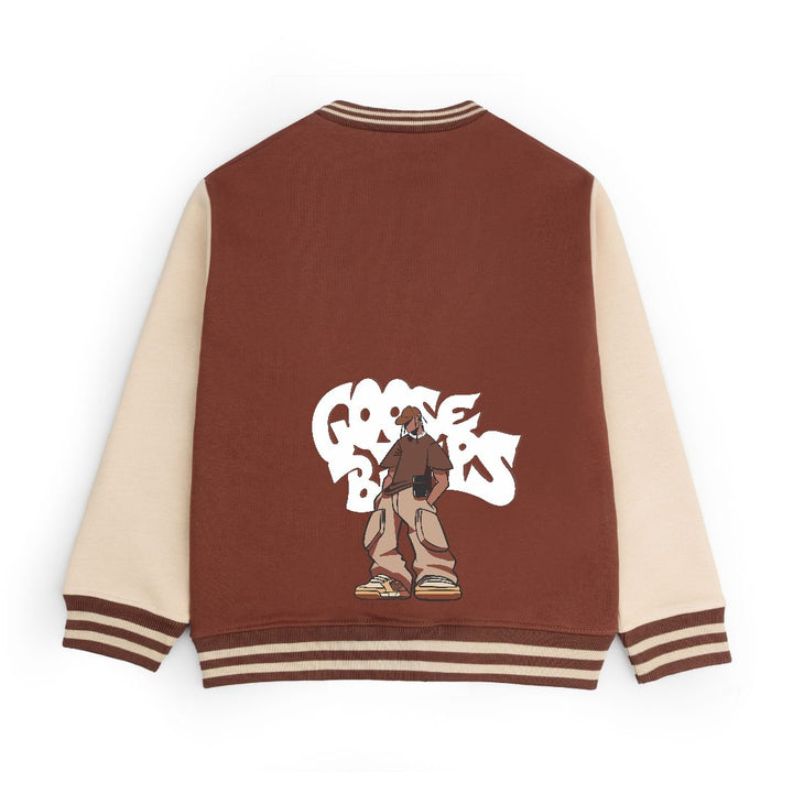 FLEECE BASEBALL JACKET - BROWN OFFWHITE GOOSE BUMPS