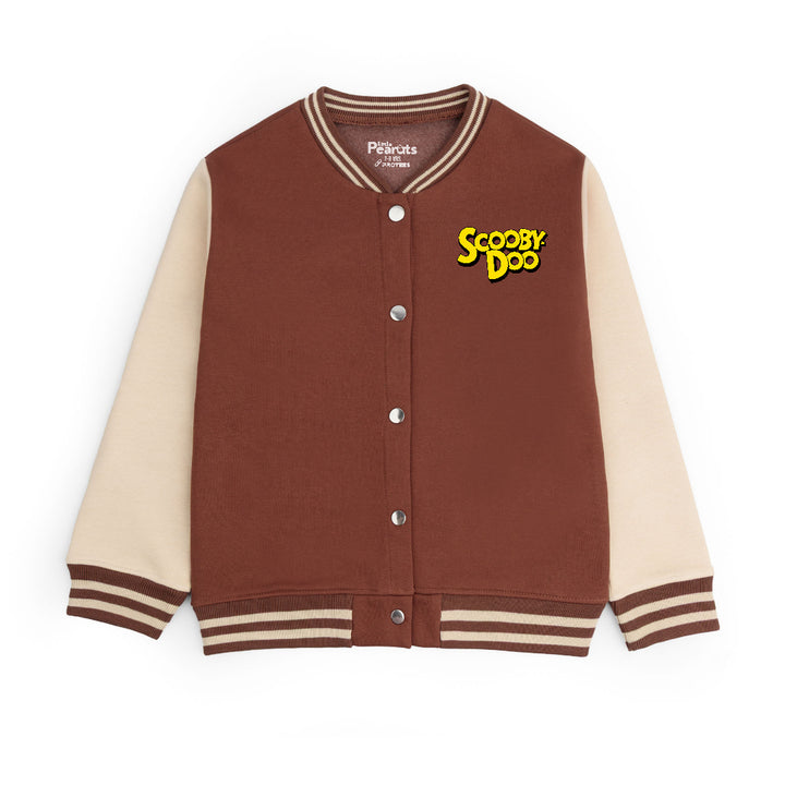 FLEECE BASEBALL JACKET - BROWN OFFWHITE SCOOBY DOO