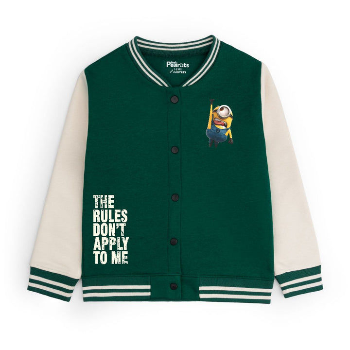 FLEECE BASEBALL JACKET - GREEN OFFWHITE MINION RULES
