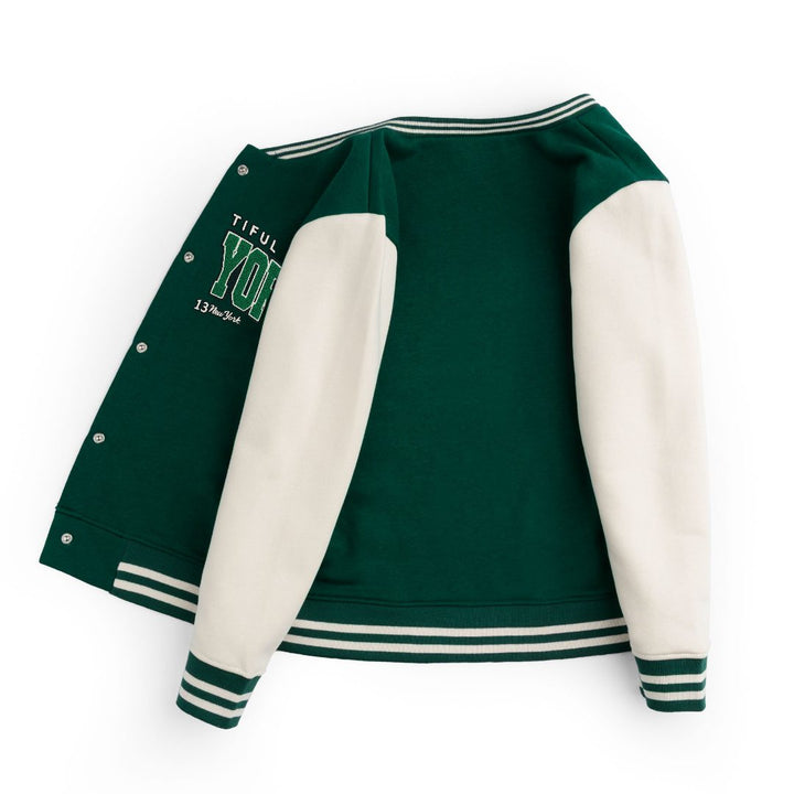 FLEECE BASEBALL JACKET - GREEN OFFWHITE NEW YORK