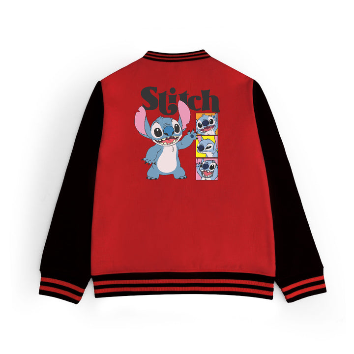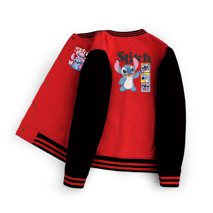 FLEECE BASEBALL JACKET - RED BLACK STITCH & ANGEL