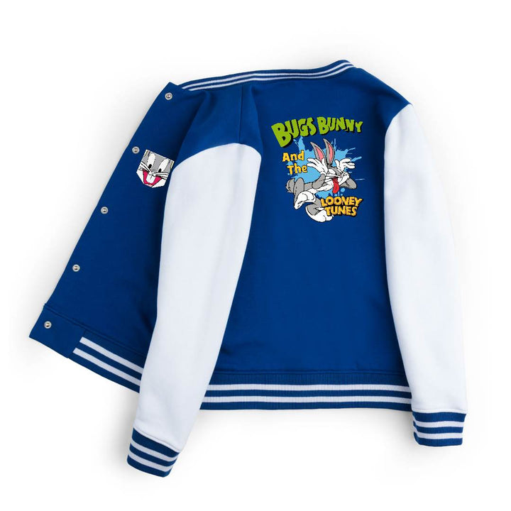 FLEECE BASEBALL JACKET - ROYAL WHITE BUGS BUNNY