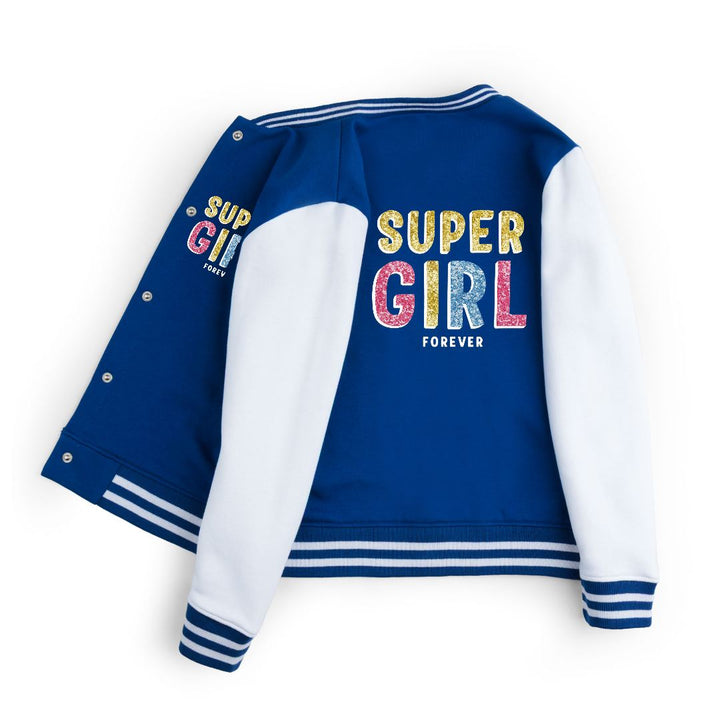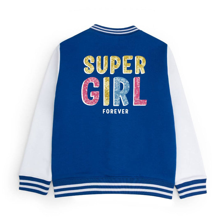 FLEECE BASEBALL JACKET - ROYAL WHITE SUPER GIRL