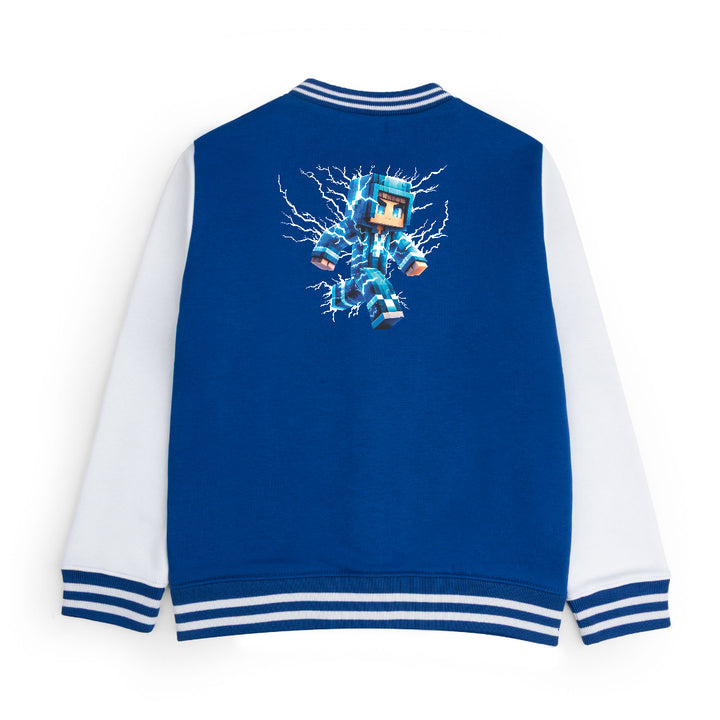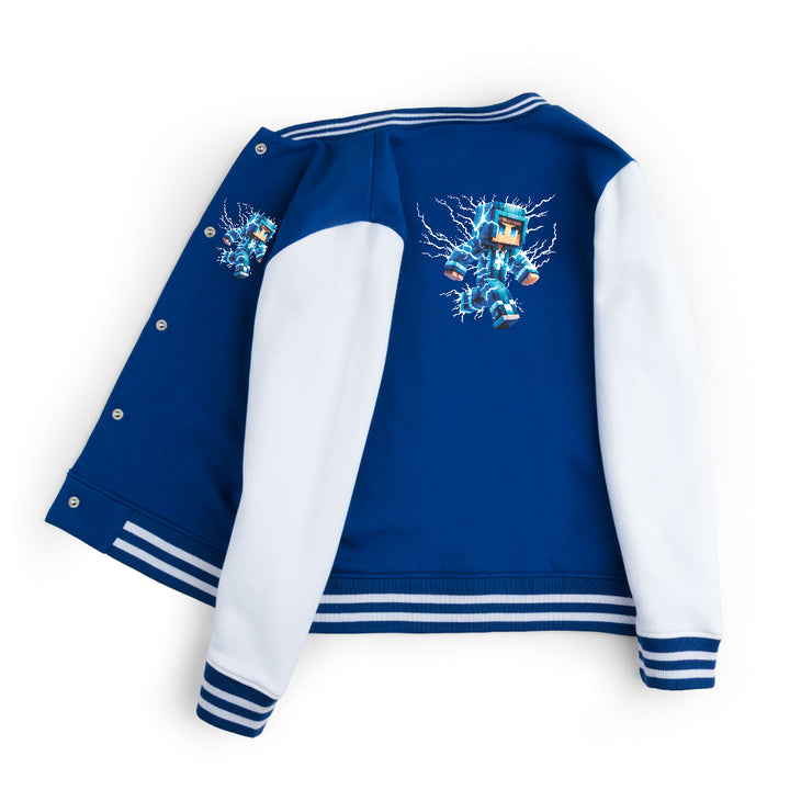 FLEECE BASEBALL JACKET - ROYAL WHITE THUNDER MINECRAFT