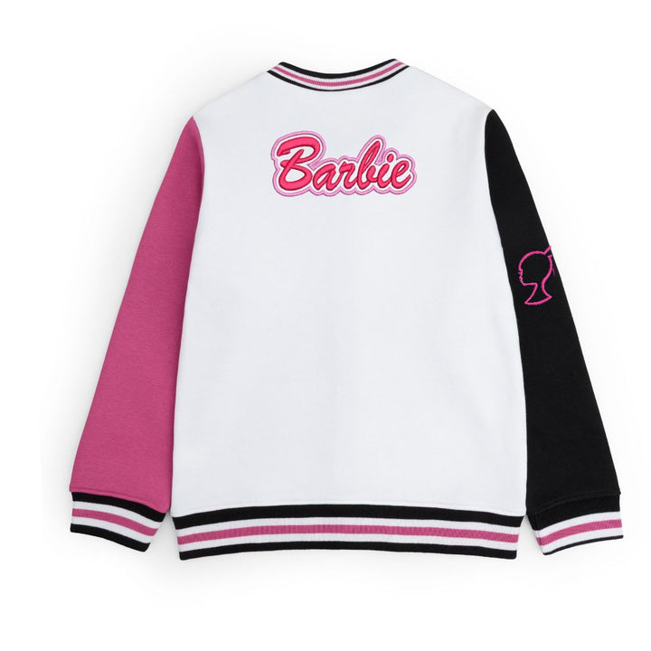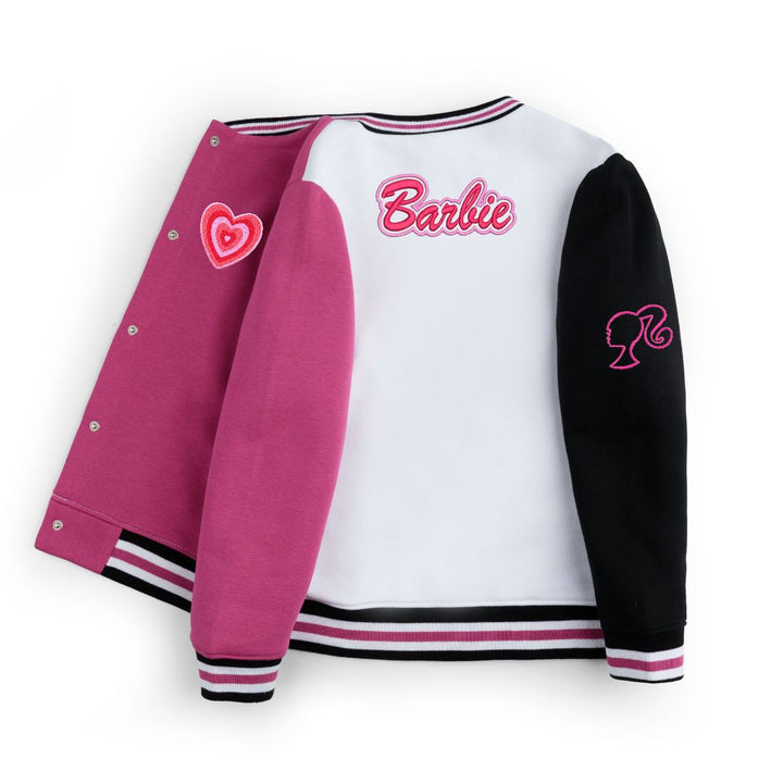 FLEECE BASEBALL JACKET - SHOCKING PINK WHITE BARBIE HEART