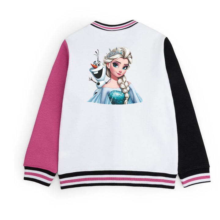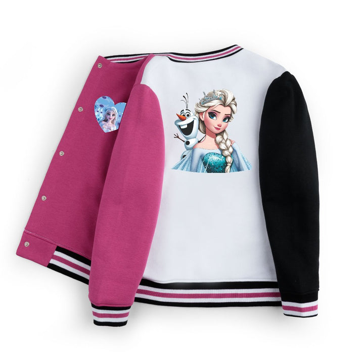 FLEECE BASEBALL JACKET - SHOCKING PINK WHITE ELSA QUEEN