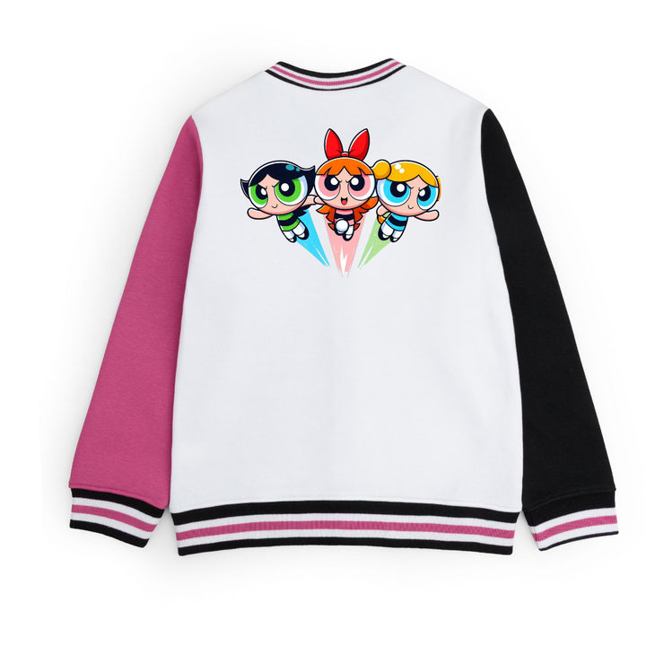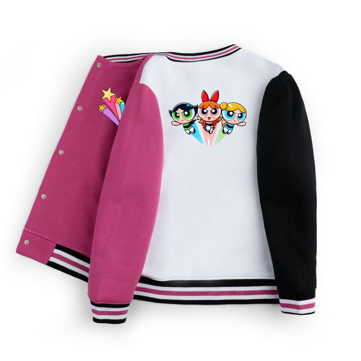 FLEECE BASEBALL JACKET - SHOCKING PINK WHITE GIRL POWER